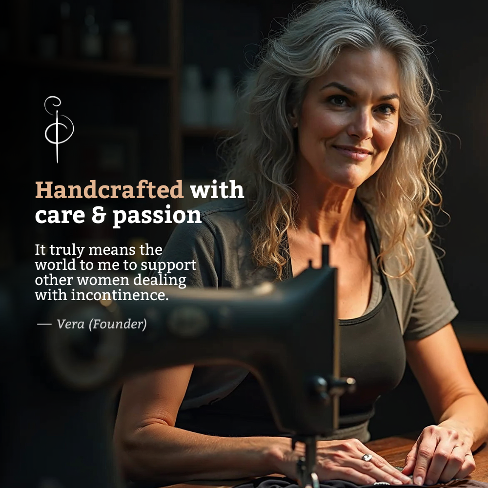 Hi, I’m Vera. For years, I struggled with incontinence, pouring my time and energy into finding a solution that actually worked. Every product I tried left me feeling uncomfortable, self-conscious, and frustrated. I knew there had to be a better way.